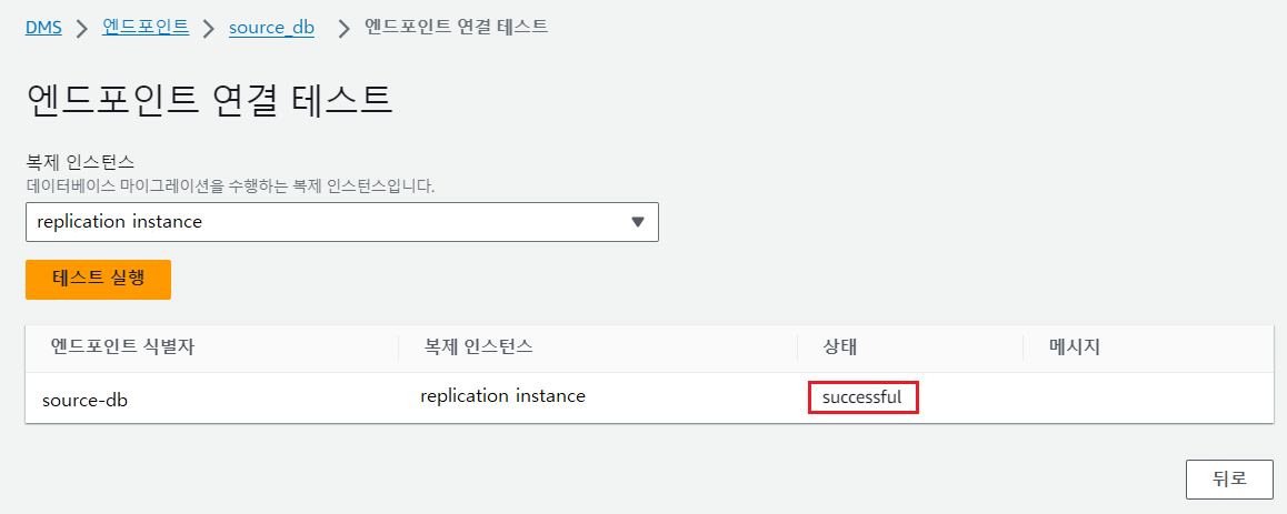 엔드포인트 > 생성한 엔드포인트 클릭 > 엔드포인트 연결 테스트