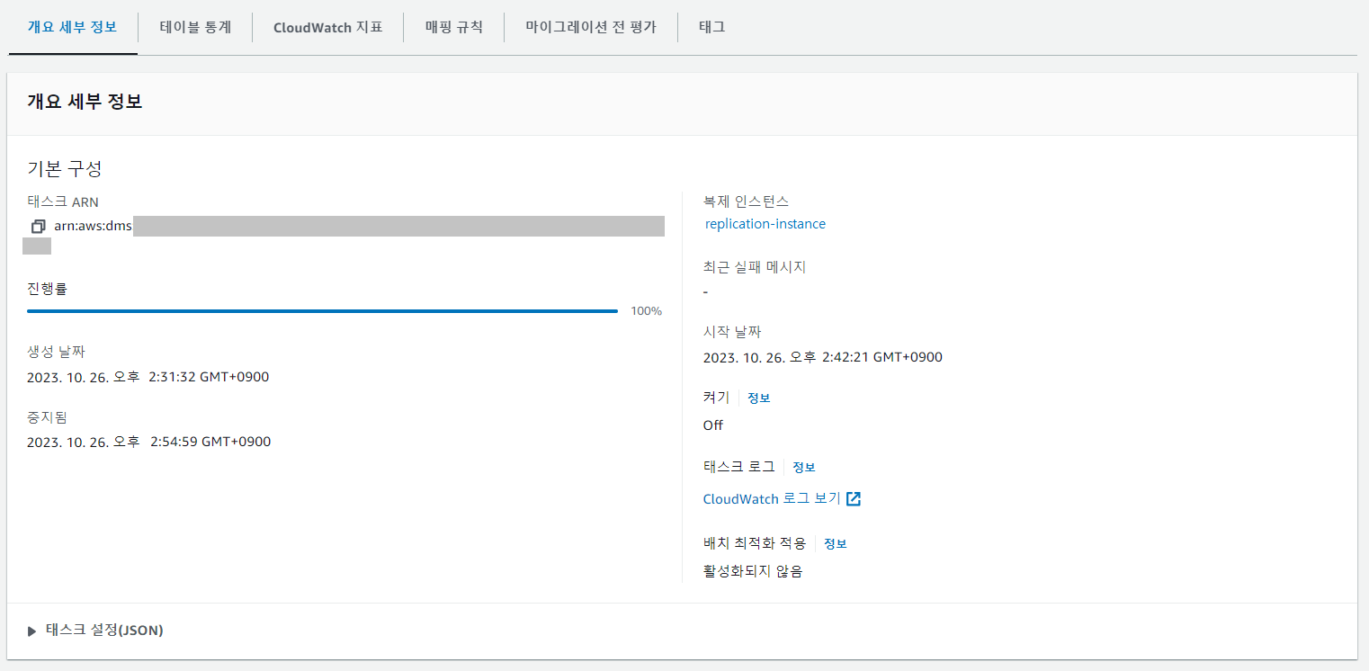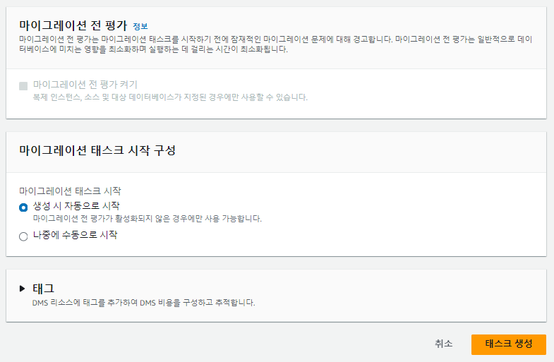 데이터베이스 마이그레이션 태스크 > 해당 태스크