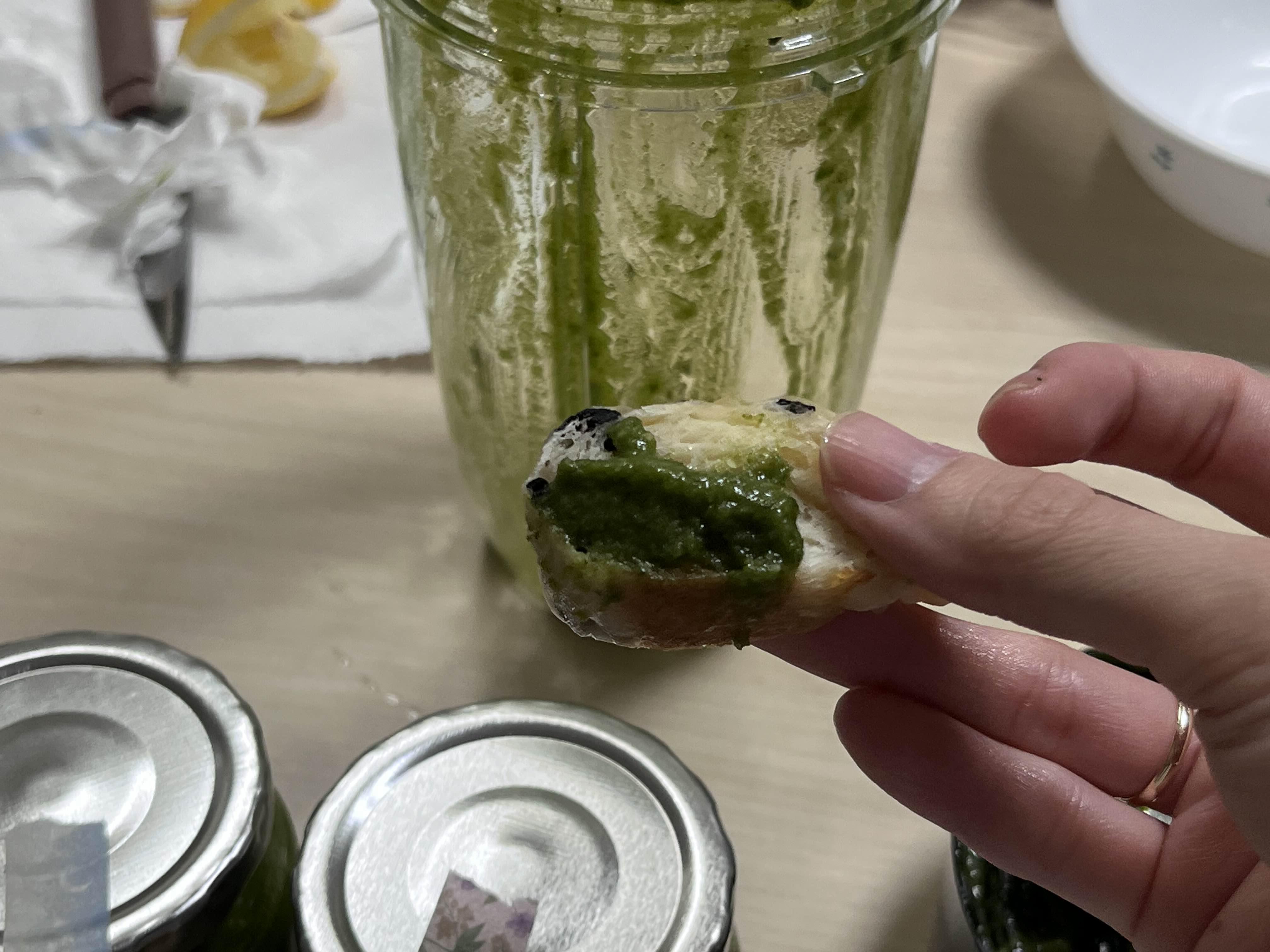 6. 믹서기에 남은 바질페스토를 빵으로 잘 긁어서 입에 넣어주면 진짜 끝!